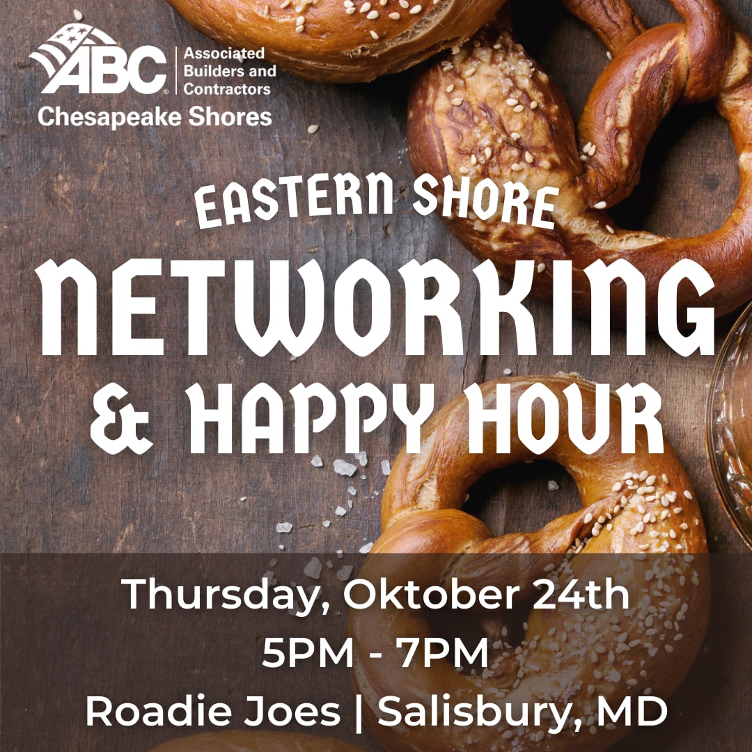 Join ABC Chesapeake Shores for a Networking & Happy Hour at Roadie Joes Bar & Grill in Salisbury, MD! This Eastern Shore gathering will serve as a great opportunity to reconnect with familiar faces and meet new members! Weather permitting, this event will be hosted outside on the venue's heated patio.Member Pricing: $65 per personProspective Member Pricing: $95 per personRegistration Includes: Heavy hors d'oeuvres and (2) drink tickets for beer or wine!Sponsorships AvailableBar Sponsor $260 (unlimited)Co-branded signage at bar