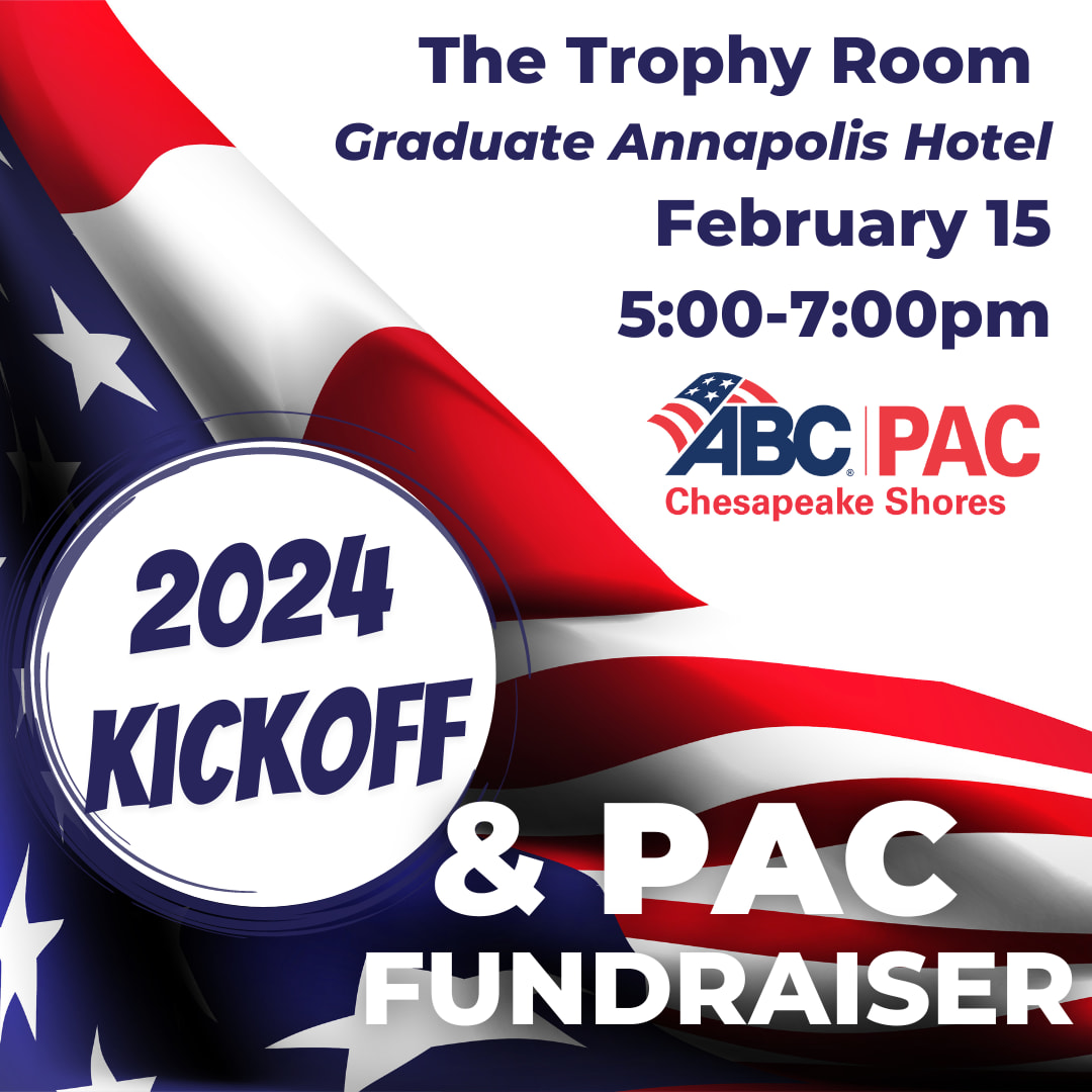 Join ABC Chesapeake Shores as we kickoff the new year at our annual 2024 Kickoff Event & PAC Fundraiser at The Trophy Room (located inside the Graduate Annapolis Hotel) in Annapolis, MD! Hear about updates regarding the predicted political landscape for 2024 and what ABC Chesapeake Shores has planned for the year! Attend this event and sign up for the coveted PAC name badge to have at every event in 2024 (all contributions go towards ABC-PAC).