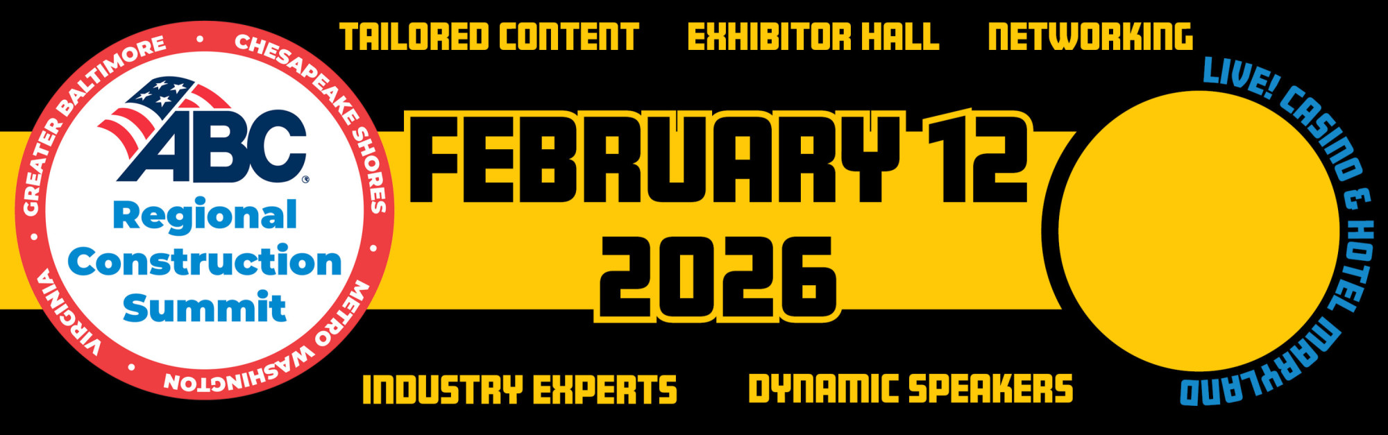 The 2026 ABC Regional Construction Summit, co-hosted by ABC Chesapeake Shores, ABC Greater Baltimore, ABC of Metro Washington, and ABC Virginia will be the premier networking and educational conference of the year! We guarantee there is content for every type of member and employee.