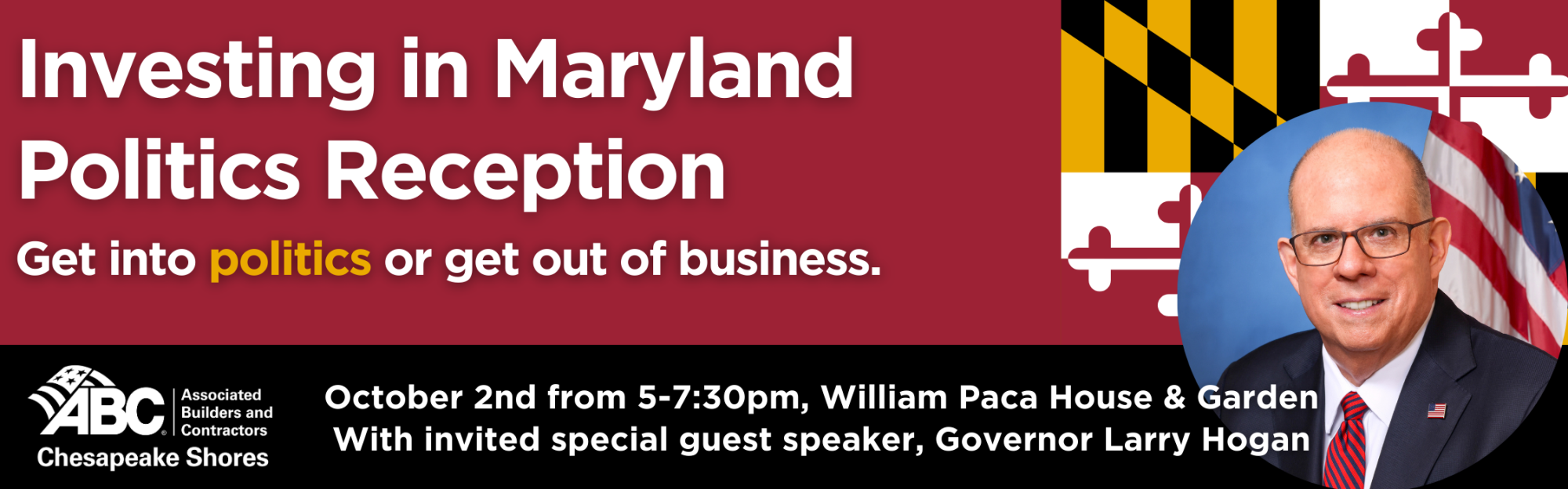 This exclusive reception will feature invited special guest speaker, former two-term Maryland Governor Larry Hogan. ABC supported Governor Hogan from the beginning and we look forward to hearing about the Governor’s past, present, and future support of business.