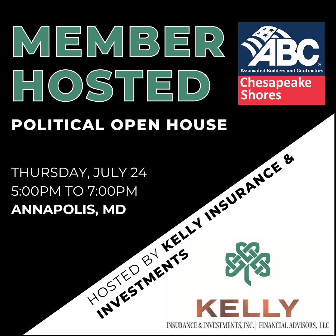 Join ABC Chesapeake Shores and Kelly Insurance & Investments, for a Member-Hosted Political Open House! This event will be hosted at the newly constructed (by several ABC members) Kelly Insurance & Investments office in Annapolis, MD, on their rooftop bar! Members are invited to attend this unique networking event where we'll be joined by invited elected-officials. **Please note that this building does not have an elevator**