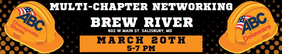 Join ABC Chesapeake Shores and ABC Delaware for a co-hosted Networking & Happy Hour at Brew River in Salisbury, MD! Members from across both chapters don't want to miss this unique opportunity to build your ABC network!