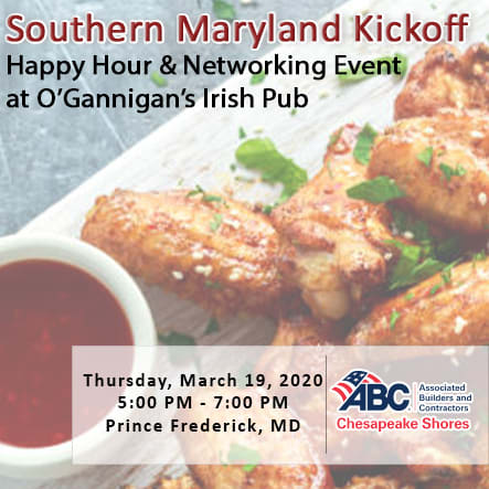 Join ABC Chesapeake Shores for our Southern Maryland kickoff meeting on Thursday, March 19th at O'Gannigan's Irish Pub in Prince Frederick, MD! Hear from ABC Chesapeake Shores leadership on topics that could include political advocacy, education and training, safety initiatives and programs, as well as the latest update on Chapter membership.