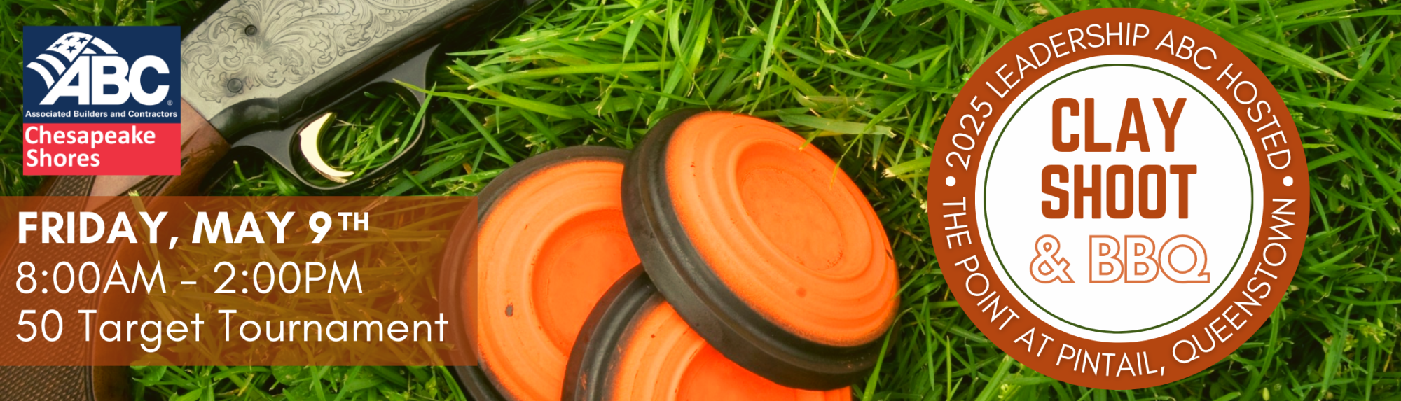 Join ABC Chesapeake Shores and the Leadership ABC participants for their annual hosted Clay Shoot & BBQ on Friday, May 9th at The Point at Pintail in Queenstown, MD! This event is open to chapter members and prospective members (must be accompanied by member in good standing).